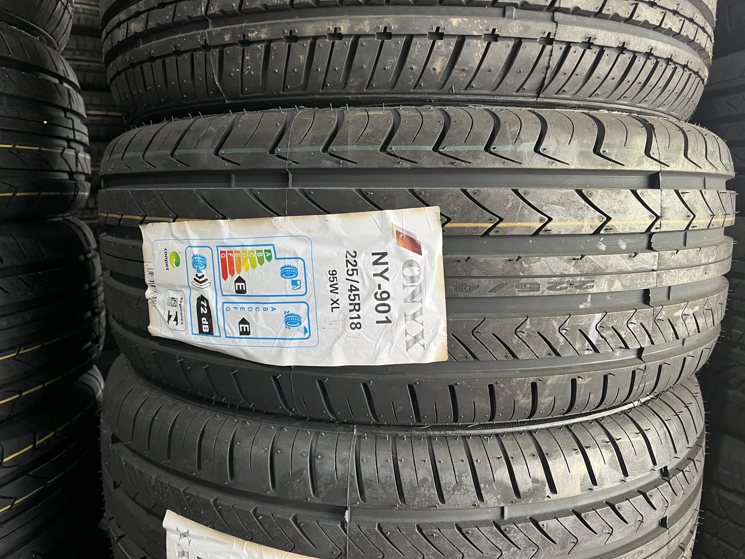 Já os pneus, outro item importante para a segurança nas vias, para serem aprovados e comercializados, são submetidos a uma série de avaliações que incluem testes de aderência em superfícies molhadas e secas, testes de aquaplanagem e de frenagem. Também são avaliados o desempenho de desgaste, consumo, resistência ao rolamento e estabilidade em altas velocidades. Ao adquirir o produto, o consumidor deve observar se o selo do Inmetro, bem como a Etiqueta Nacional de Conservação de Energia (ENCE) estão adesivados no pneu. Na ENCE deve conter informações sobre o desempenho: resistência ao rolamento, aderência em pista molhada e nível de ruído.