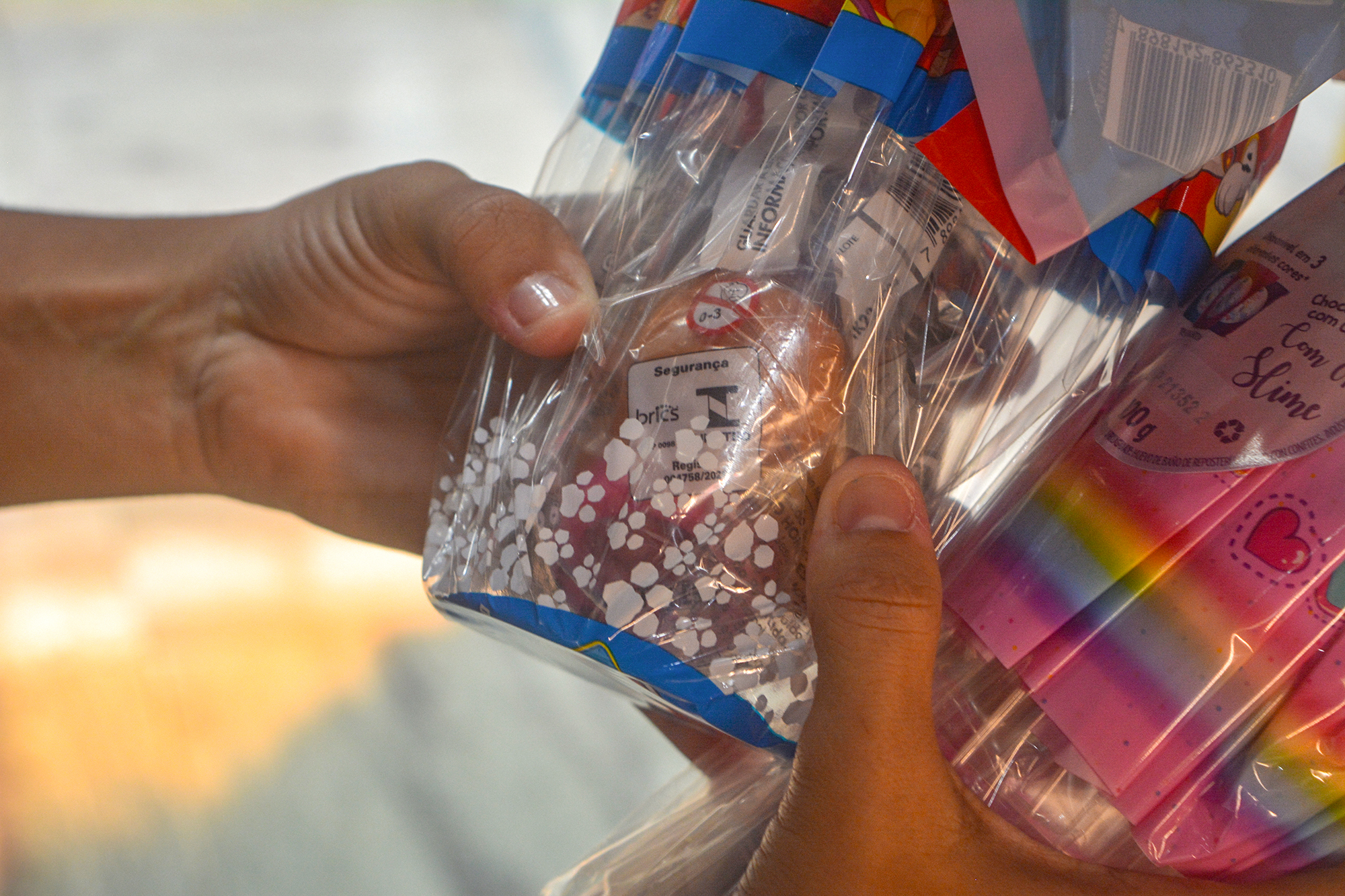 Assim como os brinquedos, os brindes ofertados junto aos ovos de Páscoa também devem trazer o selo do Inmetro. Além disso, na embalagem do chocolate, deve estar estampada a seguinte frase: “ATENÇÃO: Contém brinquedo certificado no âmbito do Sistema Brasileiro de Avaliação da Conformidade”, além da indicação da faixa etária da criança que poderá fazer uso do brinquedo.